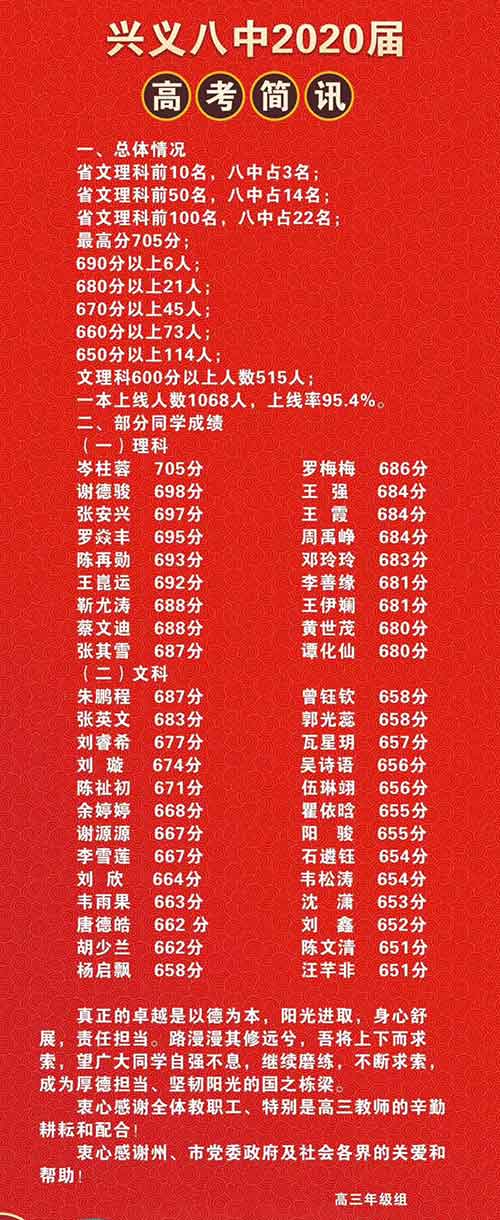 興義八中2020屆高考成績(jī)?nèi)绾危?/B>